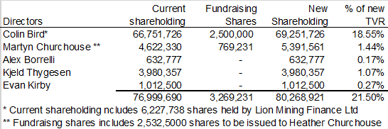Director shareholding update: The updated shareholdings of directors following the Fundraising are set out in the table below: