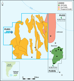 JHI's principal assets comprise a 35% working interest in the PL001 licence area in the Falkland Islands, a block directly adjacent to the transformational Sea Lion Field under development, and a 17.5% working interest in the Canje Block offshore Guyana (operated by ExxonMobil and JV partner TotalEnergies and Mid Atlantic O&G). The Canje licence lapsed on 4 March 2026 and is subject to on-going extension discussions with the Government of Guyana ("Canje Extension"). The remaining 65% interest in the PL001 licence area will be held by Navitas, assuming approval of their farm in to PL001, as announced on 2 March 2026, by FIG.
