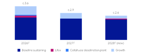 Sustaining | c.$2.2bn (previously c.$2.3bn) Reflects c.$2.1bn baseline (previously c.$2.2bn), c.$0.1bn Collahuasi desalination plant(3) | c.$2.3bn (previously c.$2.1bn) Reflects c.$2.3bn baseline (previously c.$2.1bn) | c.$2.3bn Reflects c.$2.2bn baseline, c.$0.1bn lifex projects |