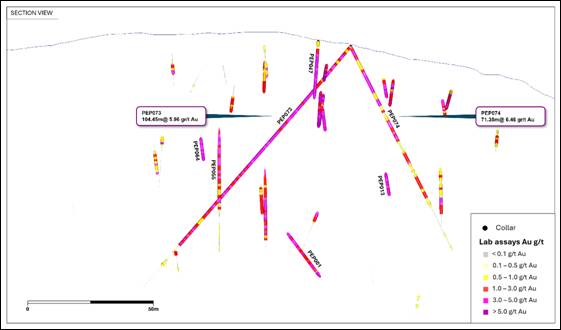 This infill drill program was completed late in December 2025, with results from the final three holes PEP072, PEP073 and PEP074 just received.