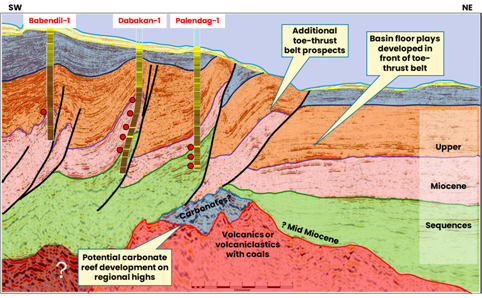 Figure 2: Seismic structural section illustrating Sulu Sea discoveries and plays |