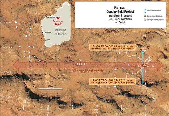 Figure 3: Wanderer Prospect- Drill Collar Plan and Mineralised Trend