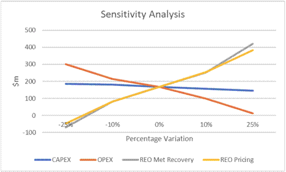 • | Revenue is based on individual REO prices as supplied by the market analyst multiplied by individual oxide recoveries. These values reflect gross forward looking revenue streams. An individual payability factor per metal is assumed where higher value/demand products can negotiate better differential payabilities. The highest payability assumed is 80% for Gd2O3 and the lowest is 40% for CeO2. The average basket payability achieved is 75%. |