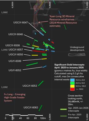 Please refer to Appendix 2.1 for full reporting of all significant intercepts from April 2025 to January 2026 and Appendix 2.2 for relevant long sections and cross sections of the Yuan Long and Fu Long high-grade gold domain and Appendix 1 JORC Table 1 for further context and details.