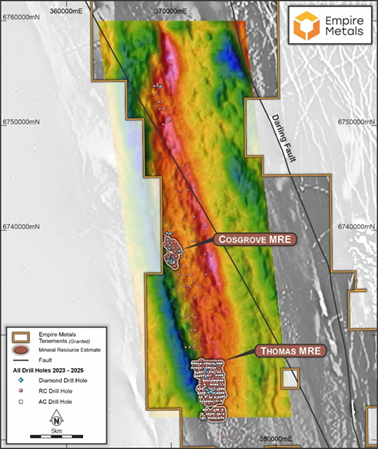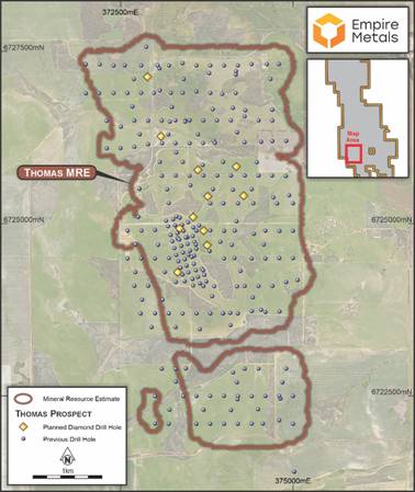 Empire Metals Limited (LON: EEE, OTCQX: EPMLF), the AIM-quoted and OTCQX-traded resource exploration and development company, is pleased to announce the commencement of a diamond drilling ('DD') campaign at the Thomas prospect within the Pitfield Project in Western Australia. The campaign has been designed to test the high-grade TiO2-rich core of the Thomas Prospect identified from previous drilling and incorporated within the recently announced Mineral Resource Estimate ('MRE').