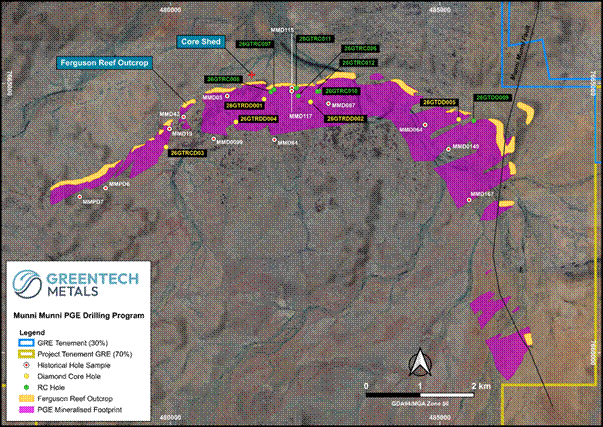 GreenTech Metals Ltd (ASX: GRE) (GreenTech or the Company) is pleased to announce that the Phase 1 drill Programme is completed at the recently acquired Munni Munni Platinum-Palladium-Copper-Nickel Project, located adjacent to the Company's advanced Whundo Copper-Zinc-Gold Project in the West Pilbara region of Western Australia. This Programme was completed ahead of schedule due to the availability and excellent preservation of the stored Munni Munni historical core, which enabled planned drill holes to be replaced by the resampling of mineralised sections of core from selected historical drill holes.