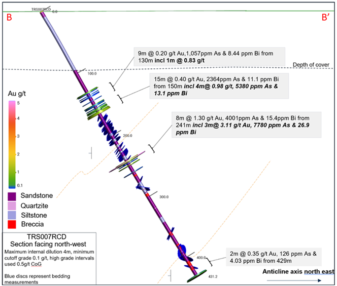 - 8m @ 1.30g/t Au from 241m (including 3m @ 3.11 g/t Au from 241m)
