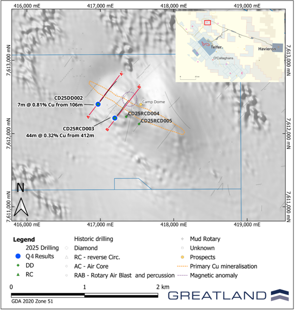 § Greatland remains well placed to deliver on its record 240,000m Telfer FY26 drilling program, with increased drill capacity now on site to accelerate the program in the March 2026 quarter.