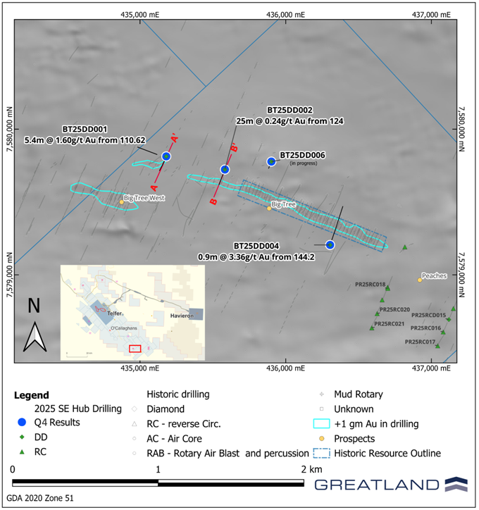 § South-East Hub satellite extension drilling at the Big Tree deposit confirmed mineralisation down dip of historic drilling and along strike of the deposit.