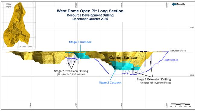 Stage 7 Extension drilling was completed during the quarter, with drill capacity shifting to predominately concentrate on the southern Stage 2 Extension which will remain a focus for much of the March 2026 quarter.