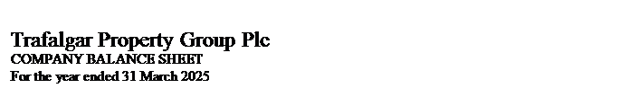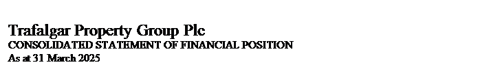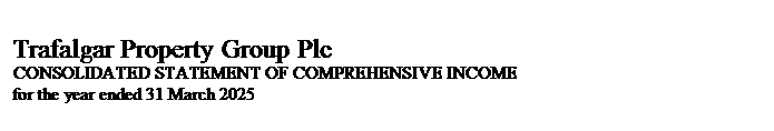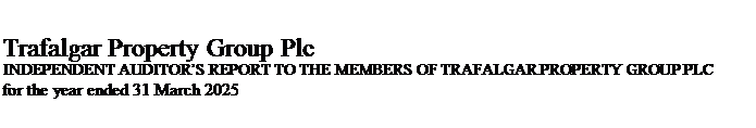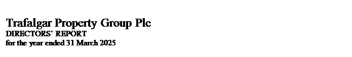 On behalf of the Board, I present Trafalgar Property Group Plc (the Group) results for the year ended 31 March 2025. The overall result continues to be disappointing, as can be seen in the attached Accounts and Strategic Report. However, we continue to seek property opportunities with planning permission having been granted for the construction of two, four-bedroomed detached properties at the Talbot Park, Tunbridge Wells site. The property at Speldhurst, held on the balance sheet at the end of last year, was eventually sold after the year end at £715,000.