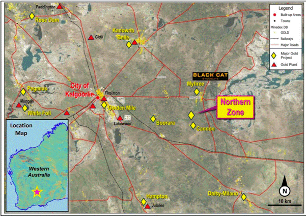 Figure 2: Location of Northern Zone Gold Project in relation to the Kalgoorlie "Super Pit".