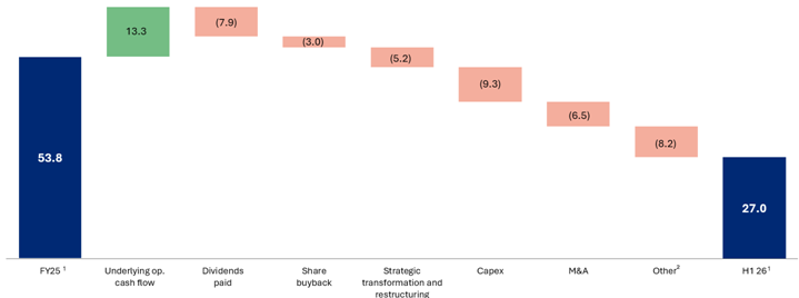 · Statutory PBT of £6.2 million (H1 2025: £12.6 million) reflects higher organic investment, M&A and integration costs.
