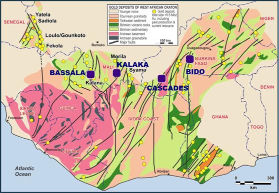 The Company has assembled an extensive and diverse portfolio of gold projects in West Africa (Figure 2), a region that is now the largest gold producing region globally. In Mali, the Company operates the Kalaka and the Bassala projects.