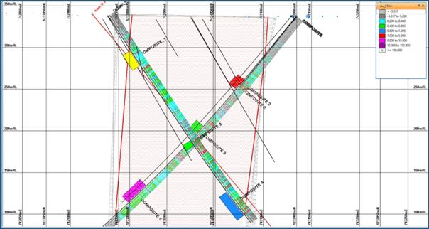 The Company collected five composite core samples from recently drilled diamond drill holes. These were selected based on geological similarities and to provide comparisons for different areas of the deposit. A section showing locations is shown in Figure 1. The bulk samples were collected under supervision of the company's Manager Mali and shipped to Intertek in Ghana via DHL.