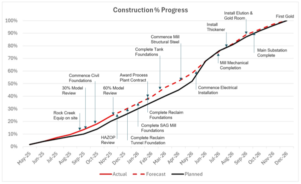 Plant construction is ahead of schedule with Plant foundations 30% complete with works currently underway at the crushing, grinding and carbon-in-leach ("CIL") tanks areas. The CIL tanks are expected to arrive on site in Q1 2026.