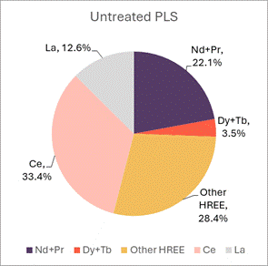 · This test work has successfully demonstrated that the proportion of Magnet Rare Earths ("MREO") can be increased from ~25.6% of the TREO in solution to ~37% with minimal loss of valuable rare earths