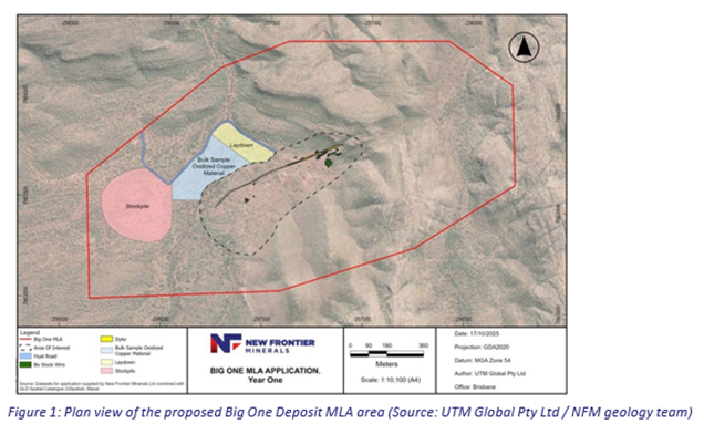 NEW FRONTIER CHAIRMAN GERRARD HALL COMMENTED "New Frontier continues to advance its diversified portfolio of critical minerals projects, with the strengthening outlook for copper highlighting the strategic importance of the NWQ Copper Project. New Frontier will accelerate activities at the NWQ Project, which includes the Mining Lease Application at the Big One Copper Deposit, which has now received technical assessment approval, marking an important step toward potential near-term copper production utilising Austral Resources' Mt Kelly Processing Facility. With a strong working capital position of approximately A$2.62 million and additional funding expected from grants and R&D rebates, New Frontier is well positioned to advance its key projects."
