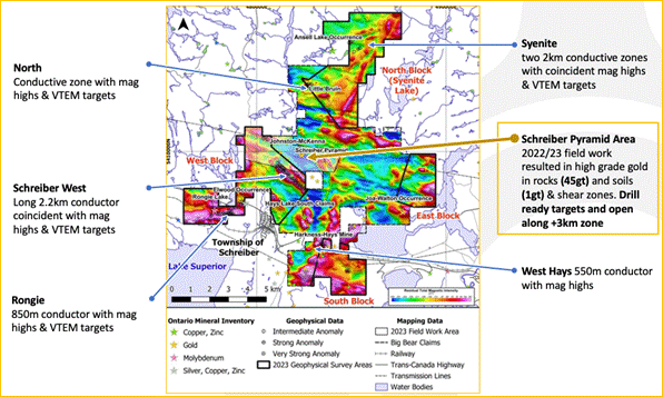 The geophysical survey completed earlier this year identified multiple priority targets for investigation in addition to the more advanced Schreiber-Pyramid area: