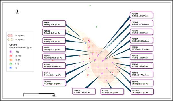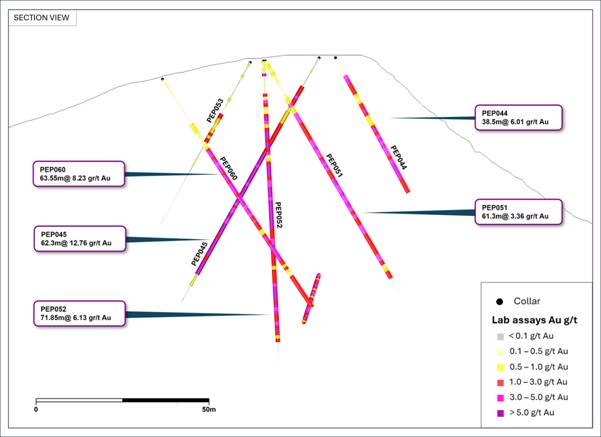 o PEP064 - 49.95m @ 4.29 g/t Au