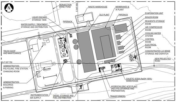 The LiCl Plant facilities will be situated northwest of the Laguna Verde, as illustrated in Figure 5, with remaining infrastructure spread around the periphery of the laguna, mainly being: