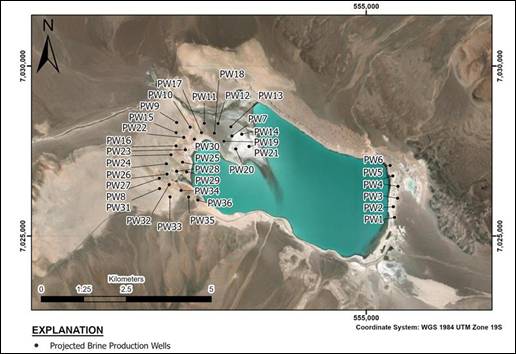 · Lithium sample values are in general homogeneously distributed along the lagoon, thus the lithium content in the lake was not estimated via kriging or another geostatistical method. The average lithium value of 246 mg/L was used for the surface brine resource estimate.