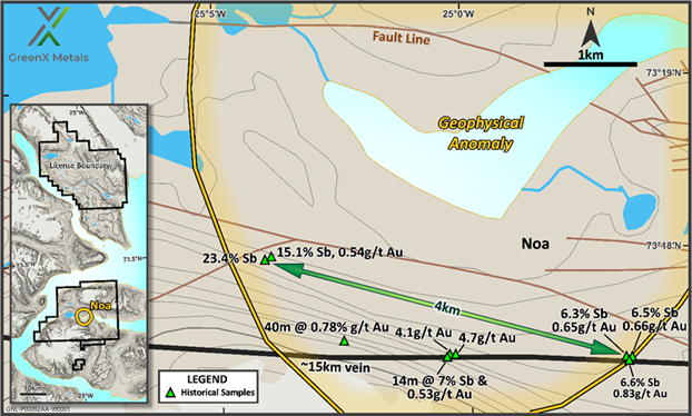 o Outcropping gold and high-grade antimony mineralisation now confirmed at the Noa Prospect within the Eleonore North Project (Eleonore North or ELN) in East Greenland