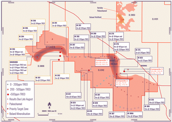 Head is one of the priority targets included within the recently completed acquisition of tenements from Tri-Star Group Pty Ltd (as announced on 26 January 2026) where large areas of palaeochannel hosted REEs proximal to Boland have been delineated within geological formations that are amenable to ISR.