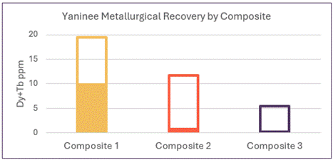 Diagnostic tests on composite pulp samples recovered from the South Australian core library yielded excellent recoveries from the target horizon - the Pidinga Formation. Recoveries are comparable to early-stage metallurgy results at Boland, where the Company has advanced metallurgical recoveries up to 68% Terbium ("Tb") and 63% Dysprosium ("Dy") through low-cost, low-impact ISR techniques.