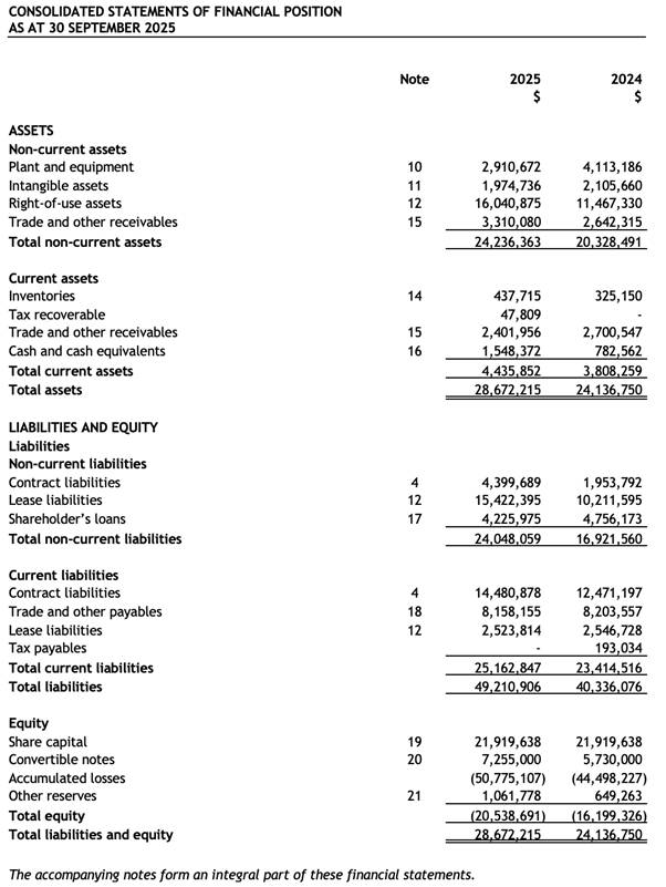 - Non-Current: $4.4 million (30 September 2024: $2.0 million).