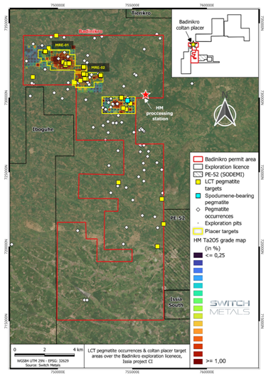 Its core assets include Issia (Ta + Nb + Li), Bouaké (Ta + Nb + REE) and Tiassalé (Li) projects. Issia is the current focus for the Company as it exhibits potential for early cash flow through ethical tantalum production from shallow coltan placer deposits with significant scale-up potential (from both placers and hard rock pegmatites).