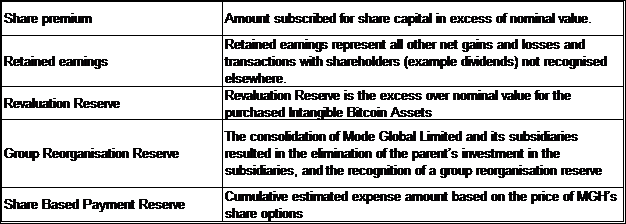 The following describes the nature and purpose of each reserve within equity: